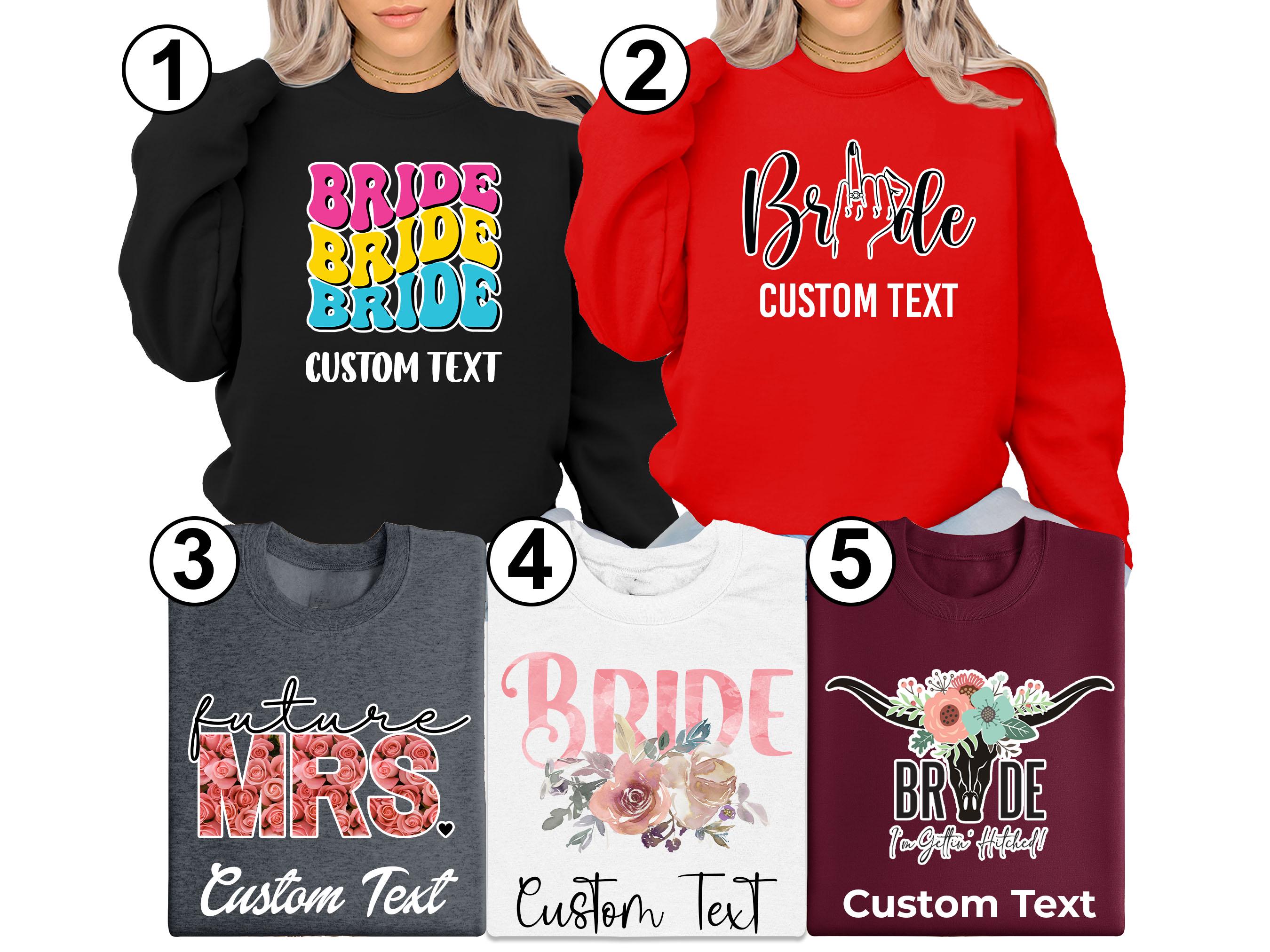 Bride sweatshirt, bride, custom bride sweatshirt, customized bride sweatshirt, sweatshirt for bride, wifey sweatshirt, Mrs sweatshirt, wife sweatshirt, fiance sweatshirt, bridal sweatshirt.