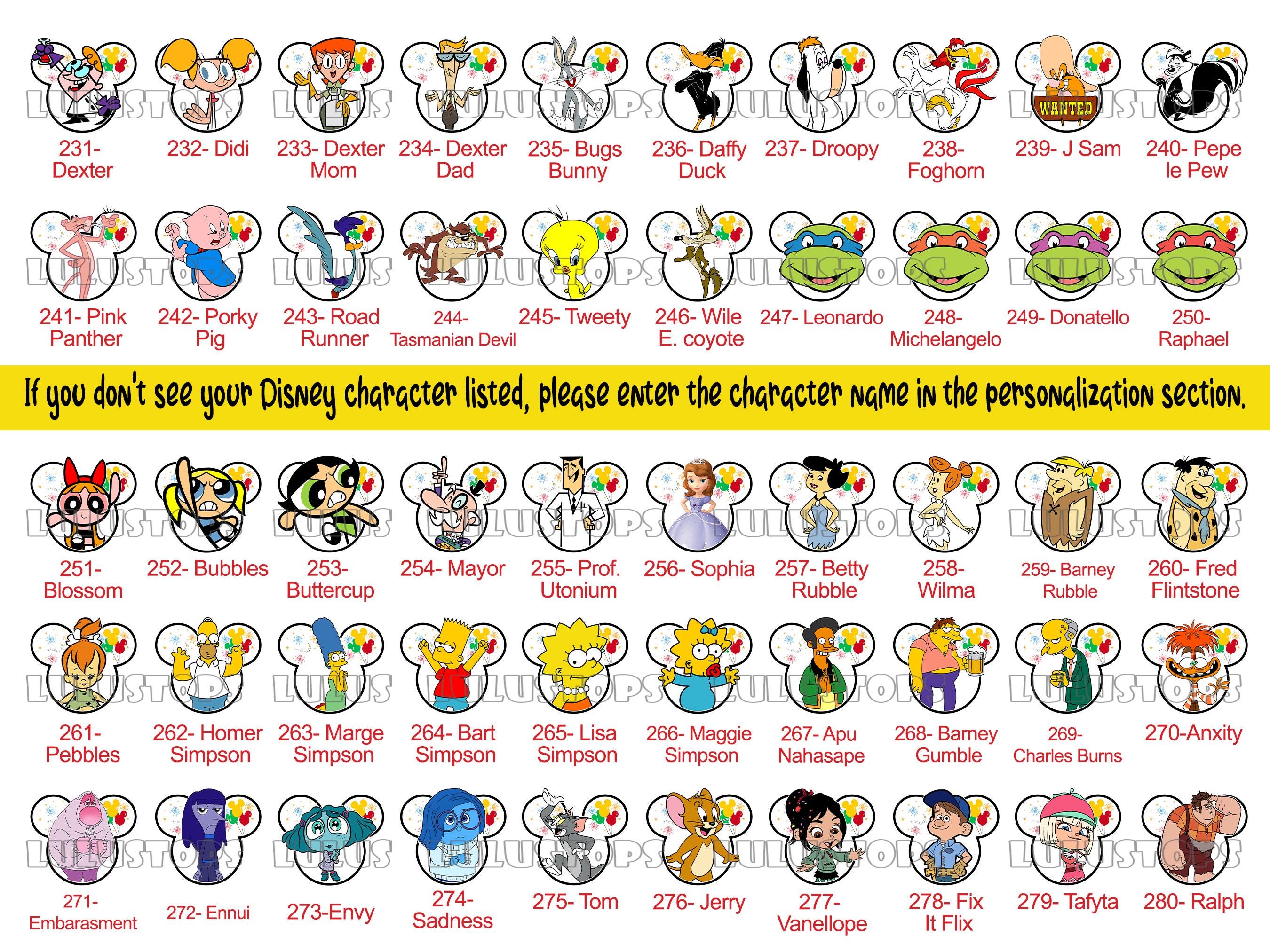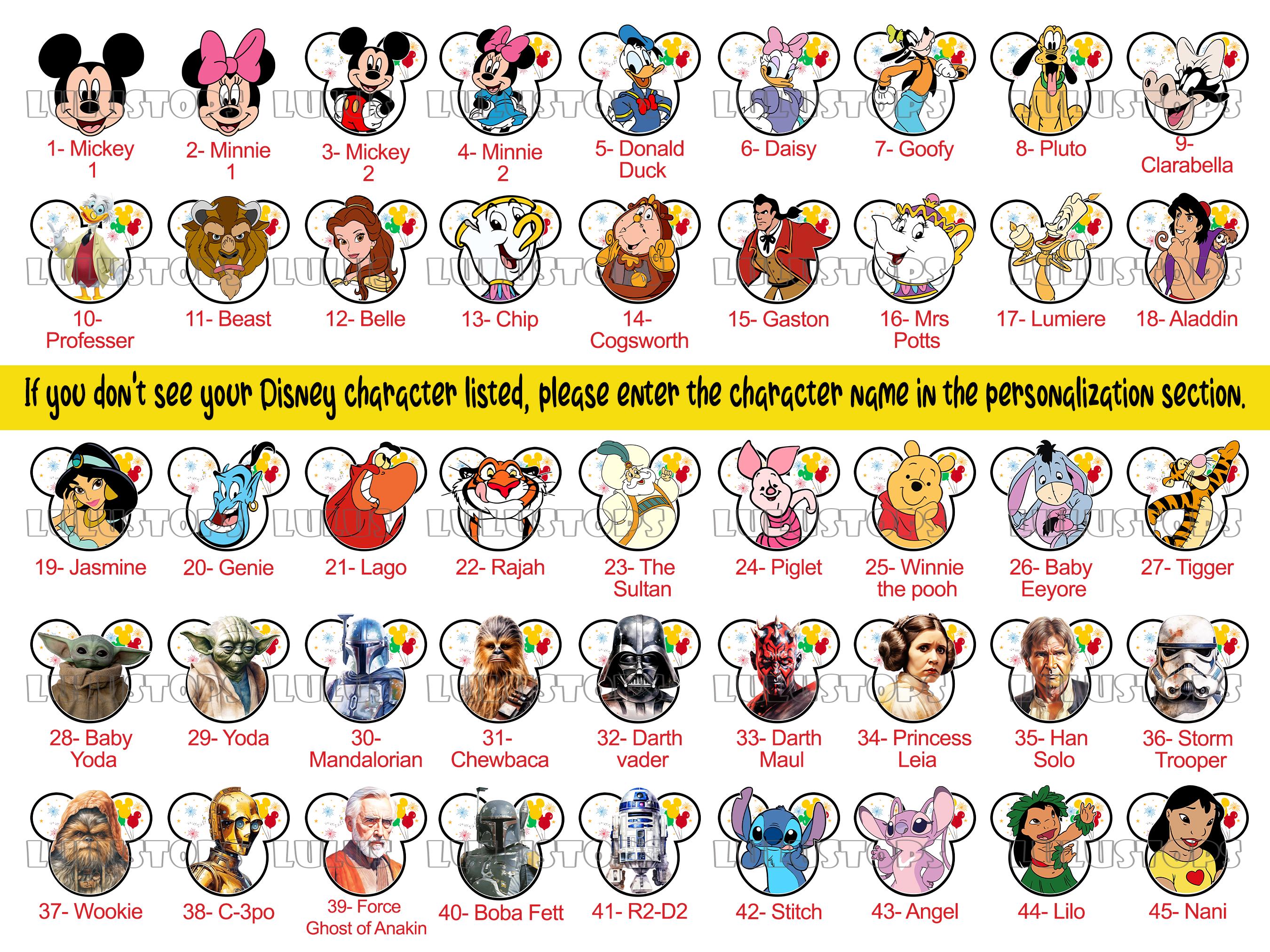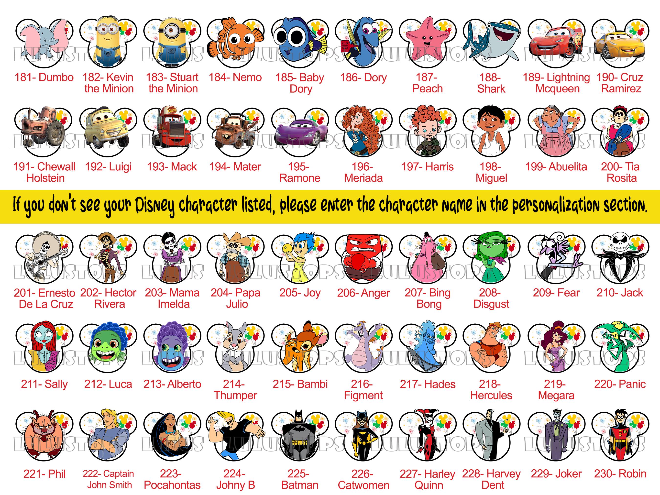 If your Disney character isn't appearing, kindly type the name in the personalization section. We'll create it for you at no additional cost once your order is placed. :)